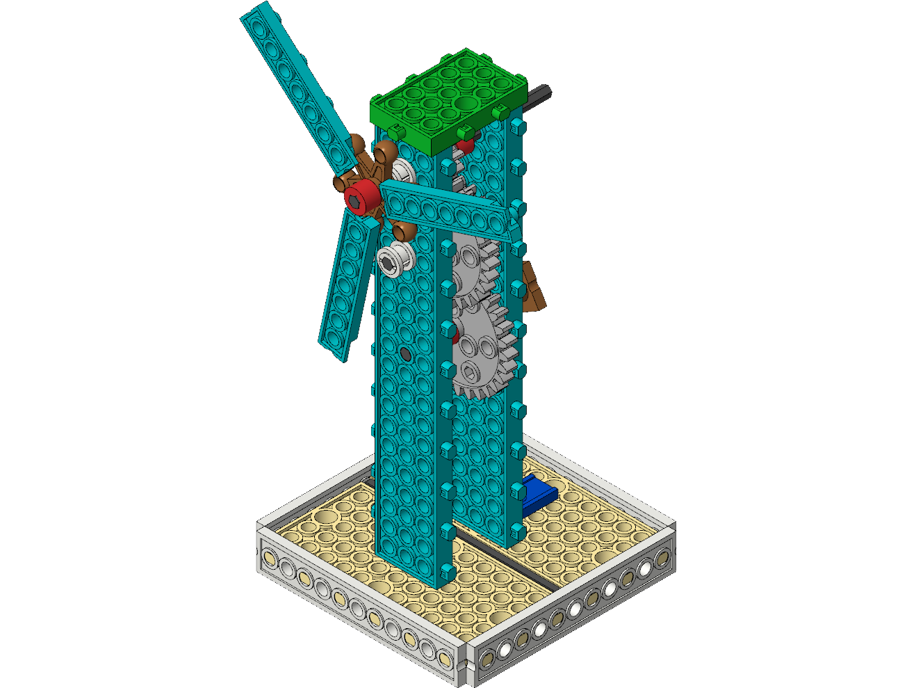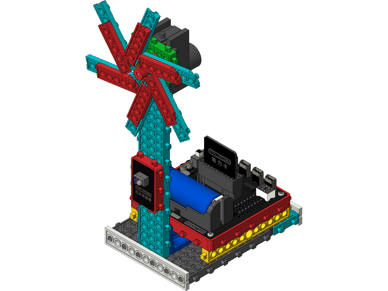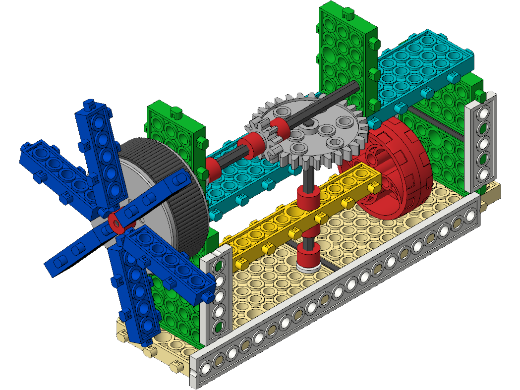 我们利用加速齿轮原理,即使只是手摇,也能使风扇快速地转动起来